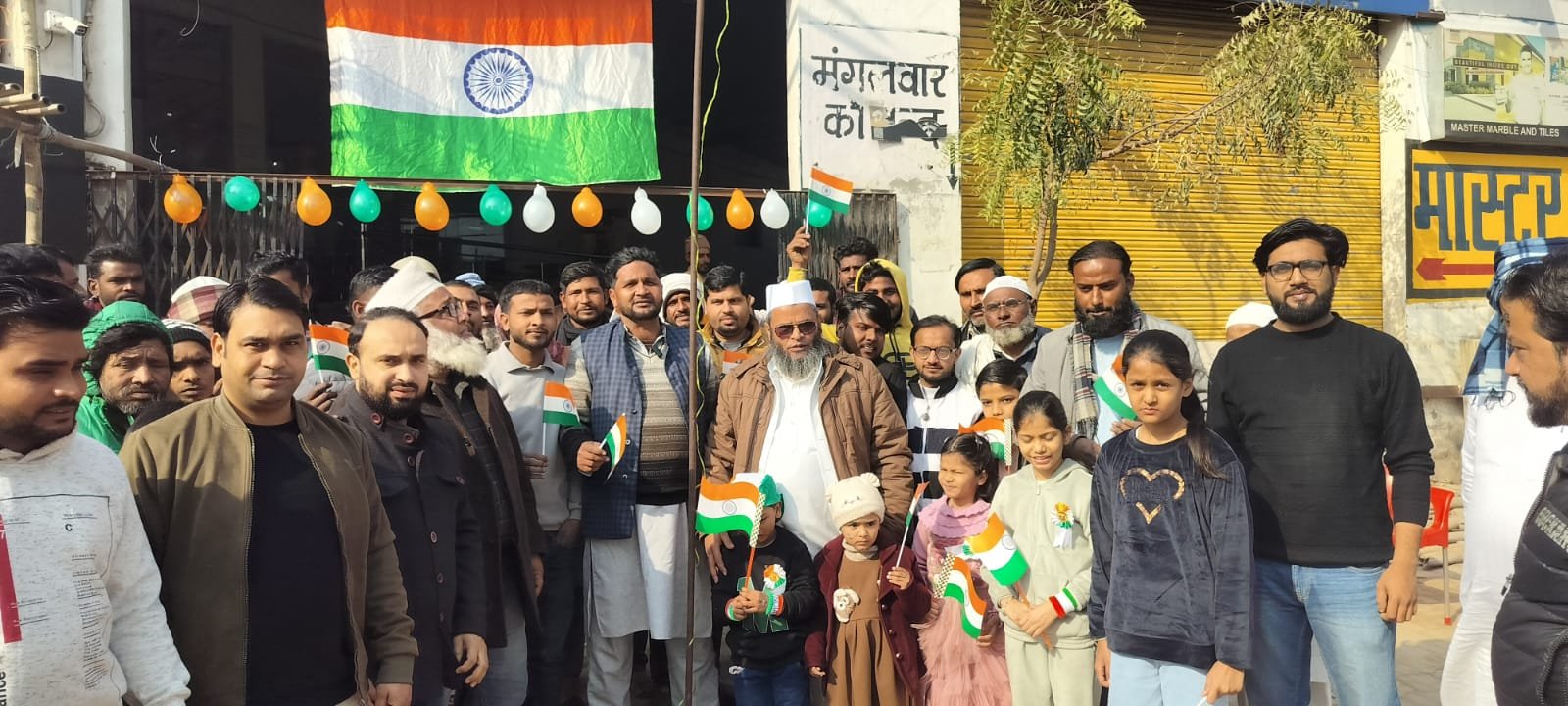 रामपुर दोराहा मास्टर टाइल्स शोरूम पर गणतंत्र दिवस का आयोजन किया गया। इस दौरान कार्यक्रम बड़े ही हर्षोल्लास और देशभक्ति के माहौल में संपन्न हुआ। इस अवसर पर शोरूम के संचालक एवं ऑल इंडिया पसमांदा मुस्लिम महाज़ के प्रदेश अध्यक्ष हाजी ताहिर हुसैन ने ध्वजारोहण किया। उन्होंने यह कार्य अनुशासन और शांति के साथ किया। राष्ट्रगान और देशभक्ति का माहौल इसके बाद संगठन के पदाधिकारी, कार्यकर्ता और शोरूम का स्टाफ उपस्थित रहा। साथ ही सभी ने राष्ट्रगान गाया। इस दौरान लोगों ने देश के प्रति अपनी निष्ठा व्यक्त की। वही पूरे परिसर में देशभक्ति का माहौल दिखाई दिया। हाजी ताहिर हुसैन का संबोधन इसके पश्चात हाजी ताहिर हुसैन ने सभी को गणतंत्र दिवस की शुभकामनाएं दीं। उन्होंने कहा कि यह कार्यक्रम देश की एकता और अखंडता का प्रतीक है। इसके अलावा उन्होंने लोगों से शांति बनाए रखने की अपील की। उनका कहना था कि भाईचारा बना रहना बहुत जरूरी है। एकता और सौहार्द का संदेश वहीं उन्होंने कहा कि आपसी सौहार्द और एकता ही देश की सबसे बड़ी शक्ति है। इसी दौरान उन्होंने योगी सरकार की सराहना की। उन्होंने बताया कि वर्तमान सरकार में सुरक्षा व्यवस्था बेहतर हुई है। उनका कहना था कि यह व्यवस्था आगे भी बनी रहनी चाहिए मिठाई वितरण और समापन अंत में कार्यक्रम का समापन किया गया। अन्त मे उपस्थित सभी लोगों को मिठाई वितरित की गई। इस प्रकार पूरा कार्यक्रम राष्ट्रभक्ति के माहौल में संपन्न हुआ। Post navigation मुरादाबाद लव जिहाद मामला: अमरोहा कांग्रेस नेता के बेटे शाहरुख गिरफ्तार, फर्जी नाम आशीष बनकर हिंदू युवती से बनाए संबंध।